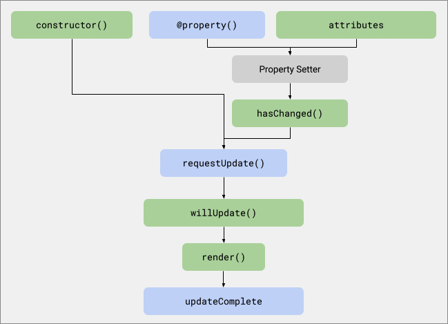 Optionally, you can pass a property name and a previous value when calling requestUpdate(), which will be stored in the changedProperties map. This can be useful if you implement a custom getter and setter for a property. See Reactive properties for more information about implementing custom getters and setters.